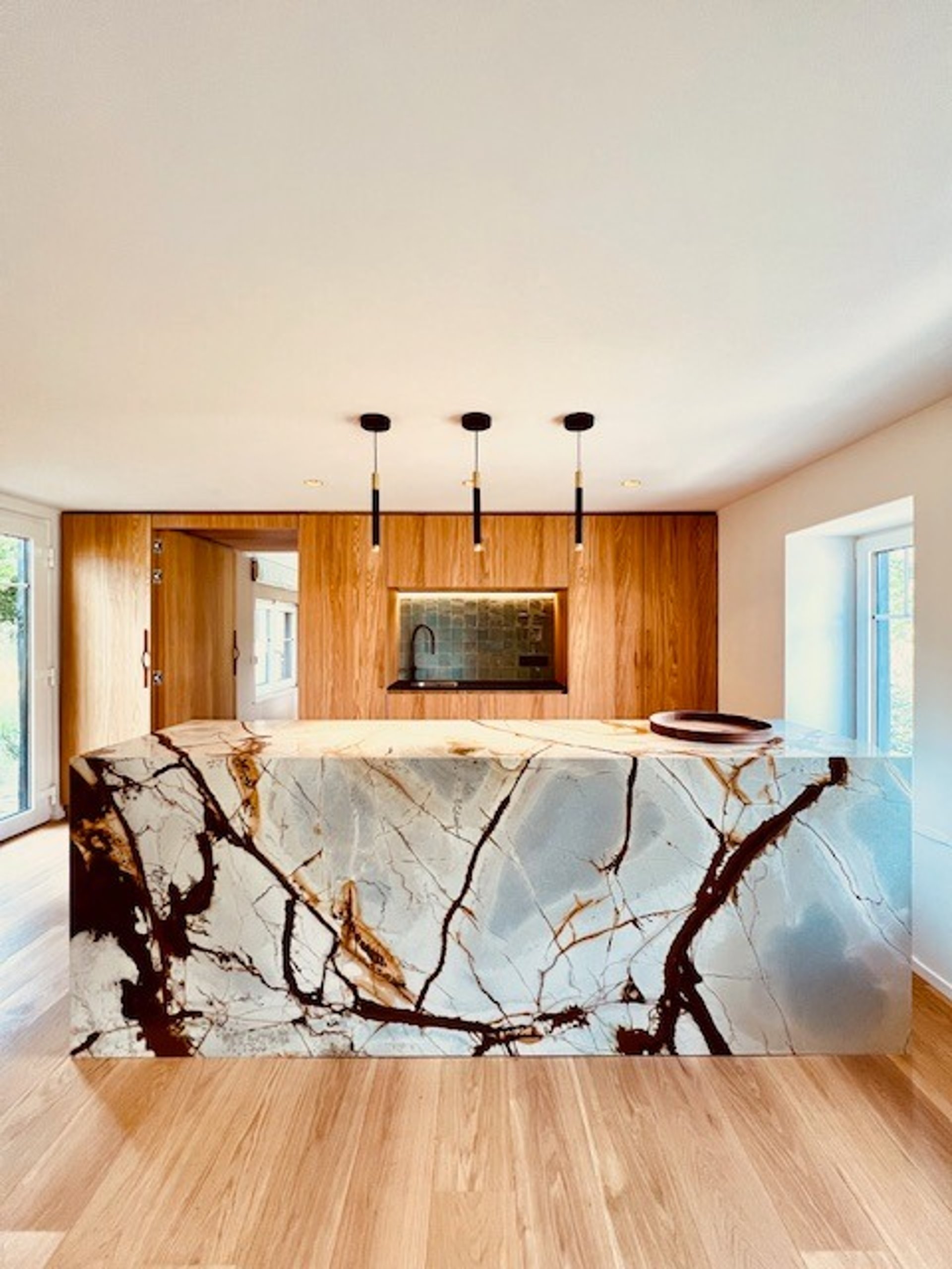 Différentes matières , mais complémentaires, pour un intérieur unique.